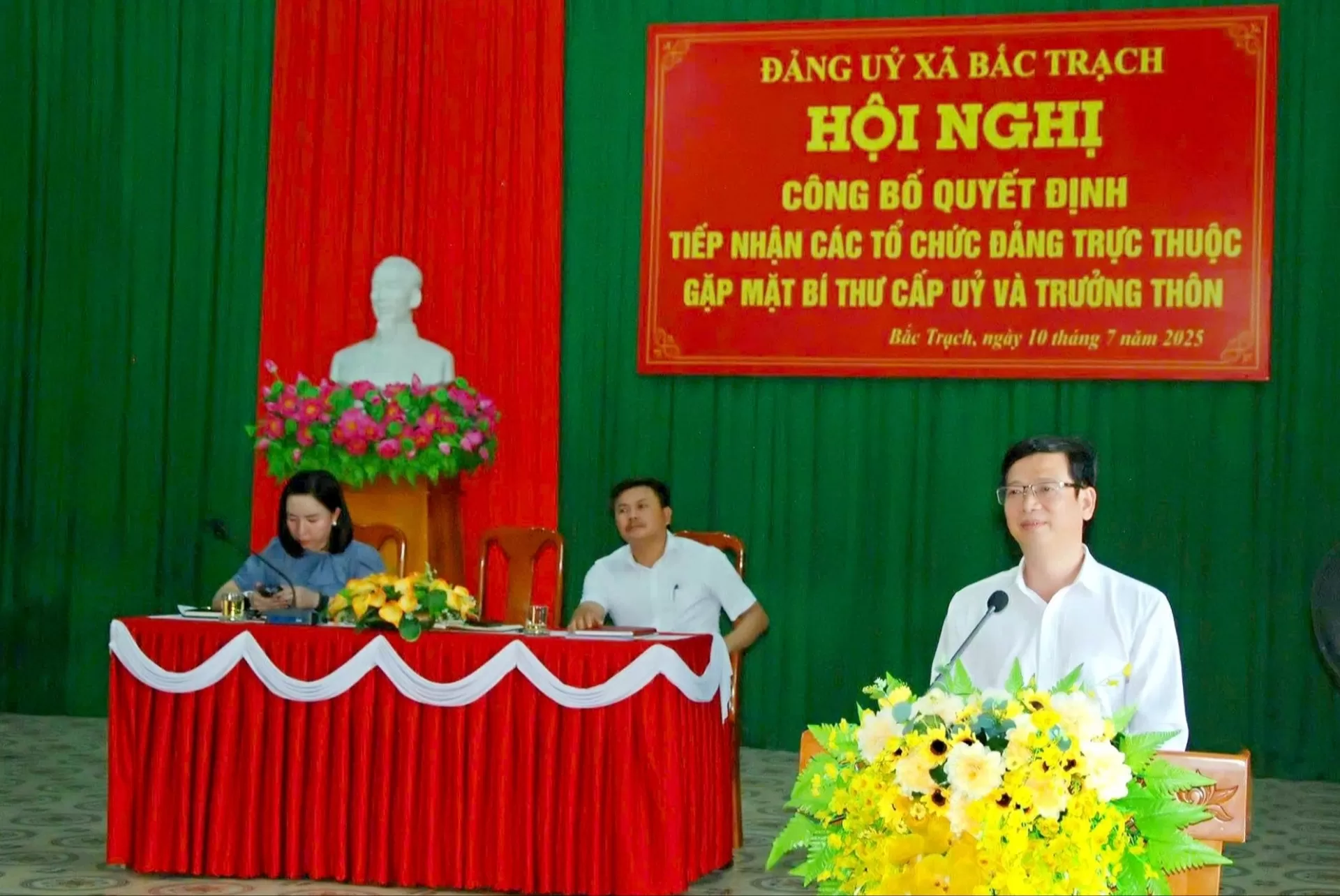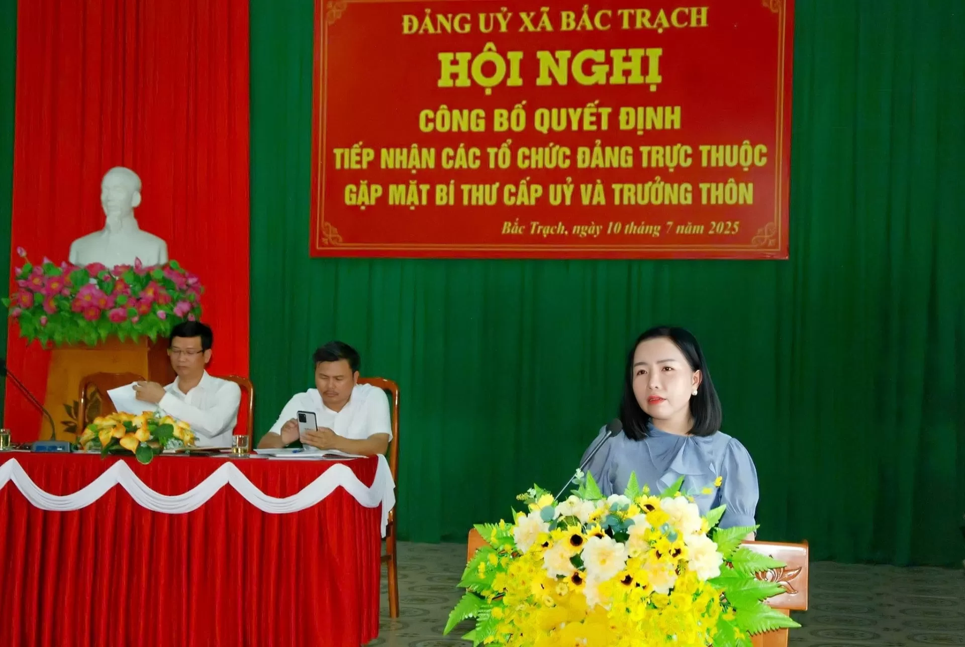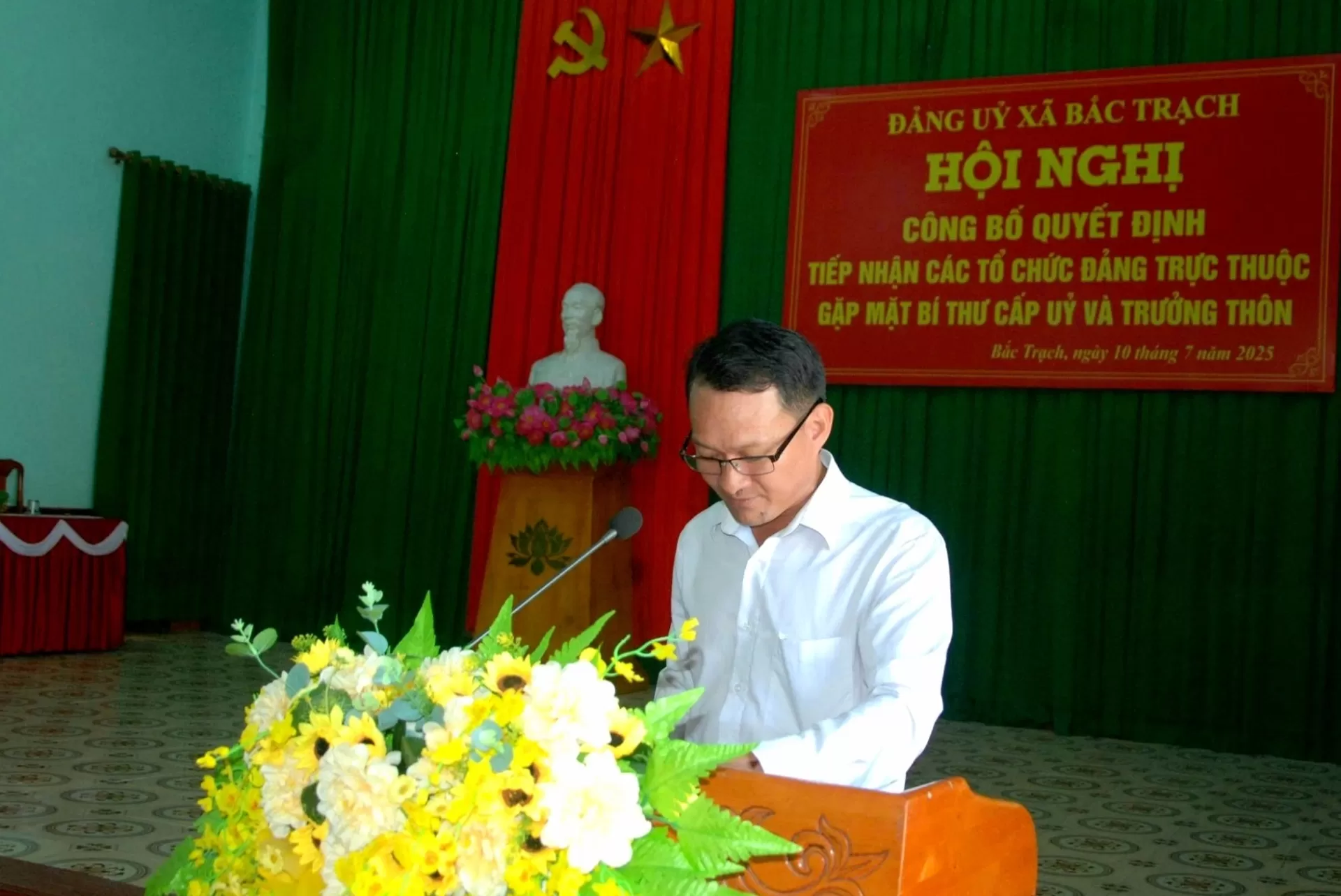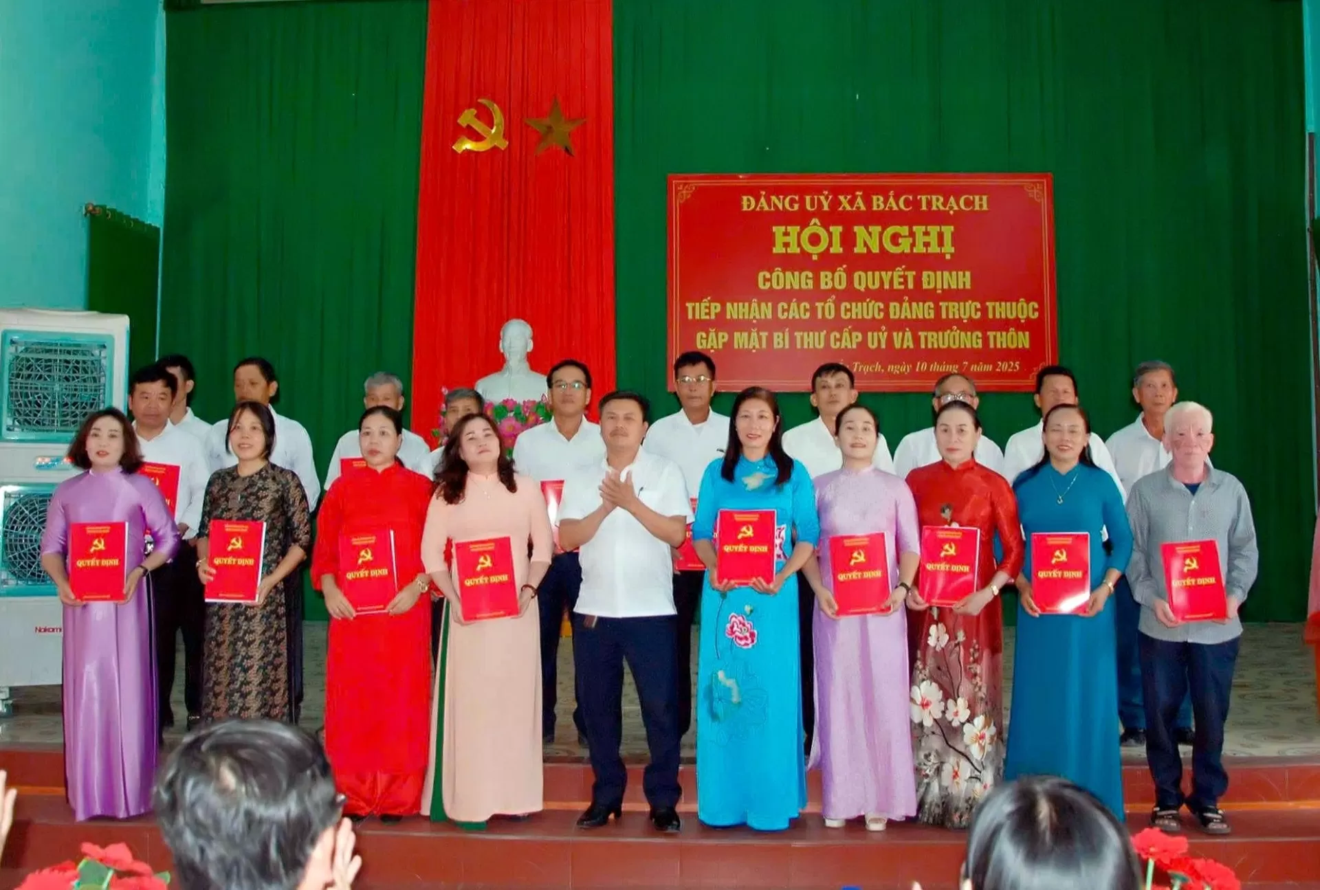 Được sự nhất trí của Ban Thường vụ Đảng ủy, ngày 10/7/2025, tại hội trường Đảng ủy (hội trường xã Thanh Trạch cũ), BCH Đảng bộ xã Bắc Trạch tổ chức hội nghị công bố các quyết định về tiếp nhận các tổ chức cơ sở đảng trực thuộc xã, nhiệm kỳ 2025 – 2030 và gặp mặt các đồng chí Bí thư chi bộ, Trưởng các thôn trên địa bàn xã.