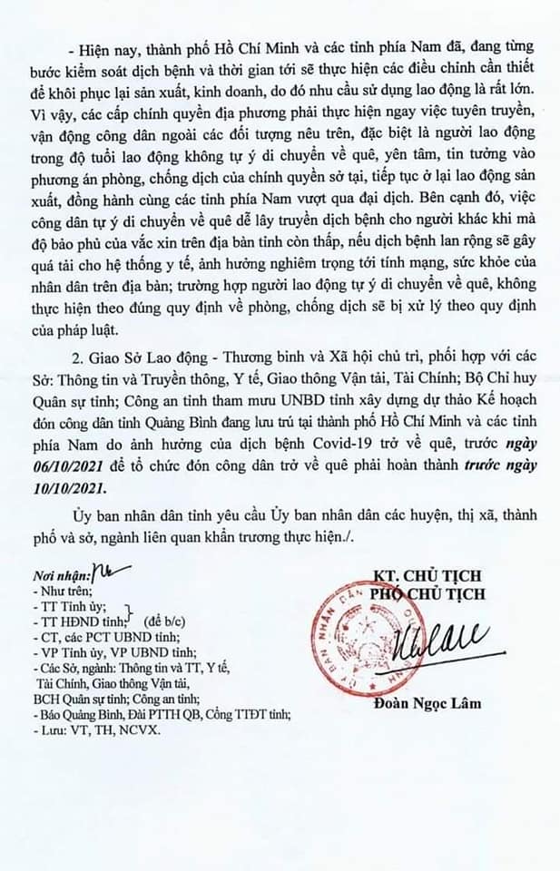 Tỉnh Quảng Bình đón bà con ở Tp. HCM và các tỉnh phía nam về quê15:21 - 03/10/2021 UBND tỉnh Quảng Bình có công văn về việc tổ chức đón bà con Quảng Bình tại Tp HCM và các tỉnh phía Nam có nhu cầu về quê Tác giả: Ban biên tậpChia sẻ: