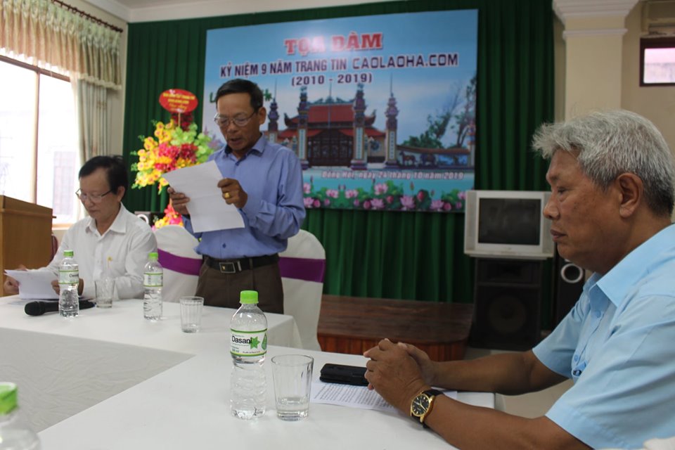 Tiếp đó, anh Lưu Quang Vinh đã đọc toàn văn bài của TS. Lưu Đức Hải, trưởng ban Biên tập, tổng kết 9 năm hoạt động của trang tin caolaoha.com (bài viết đã được đăng trên caolaoha.com).