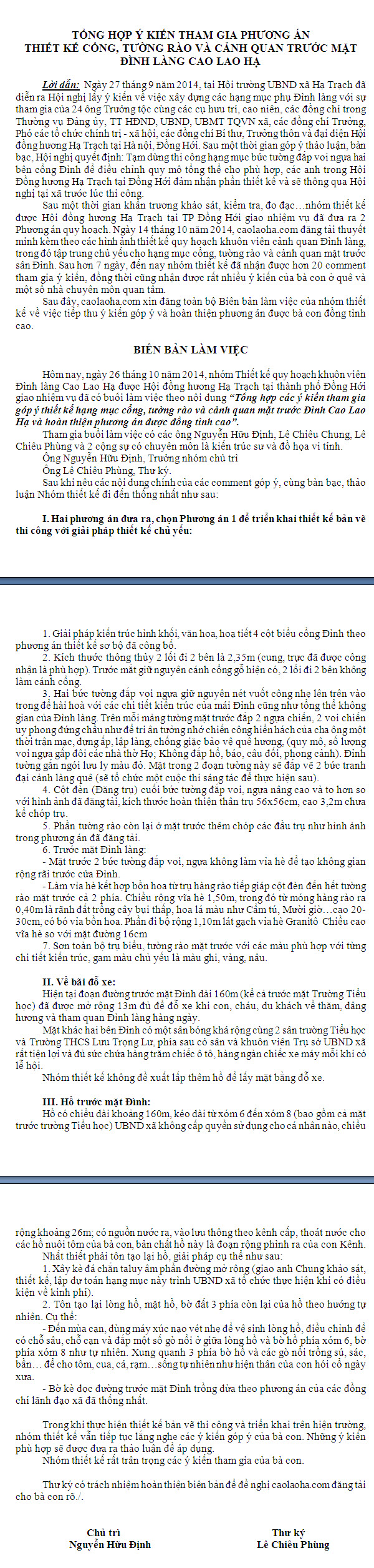 Tổng hợp ý kiến thiết kế cổng, tường rào và cảnh quan trước mặt Đình Làng14:47 - 29/10/2014Tin về việc tổng hợp các ý kiến của bà con về thiết kế cổng, tường rào và cảnh quan trước mặt Đình Làng của Hội đồng hương Hạ Trạch tại Đồng Hới Một số hình ảnh tại thực địa Tác giả: Lê Chiêu ChungChia sẻ: