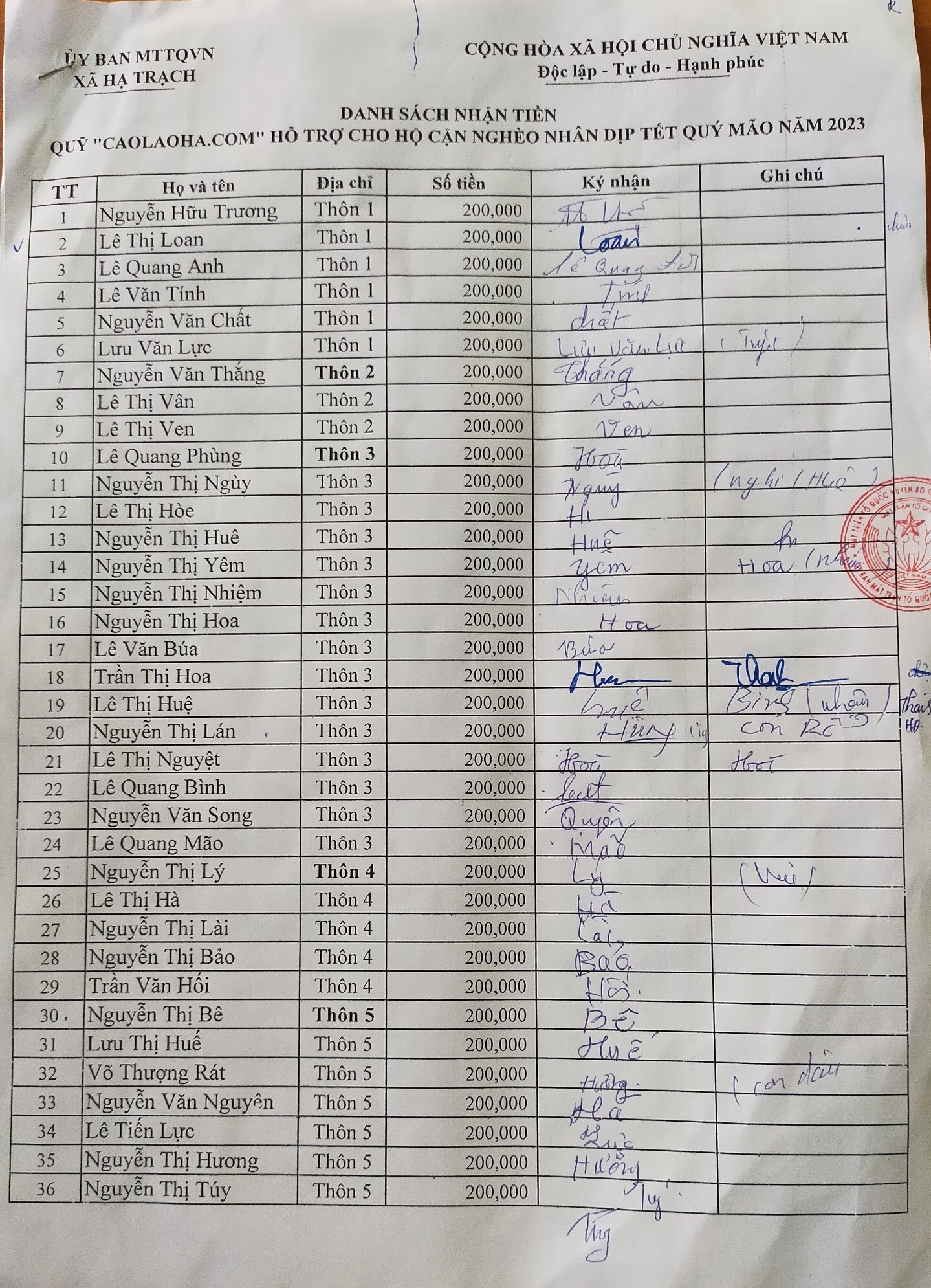 Trang tin caolaoha.com tặng quà têt cho các hộ cận nghèo xã Hạ Trạch23:06 - 21/01/2023 Danh sách 51 hộ cận nghèo xã Hạ Trạch nhận quà của trang tin caolaoha.com Tác giả: Ban biên tậpChia sẻ: