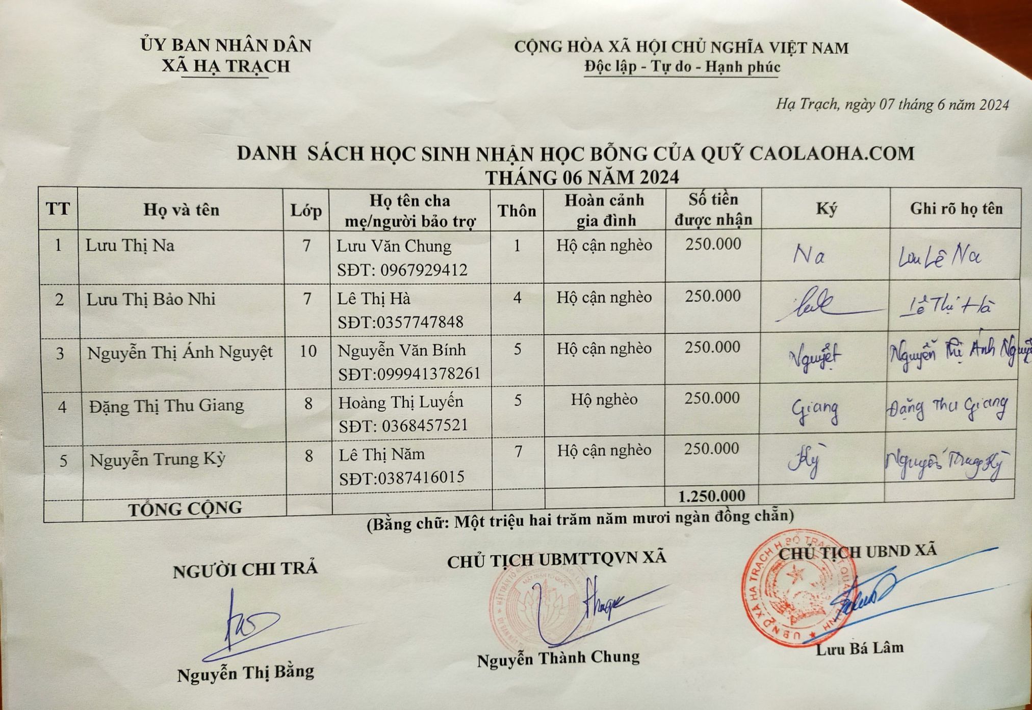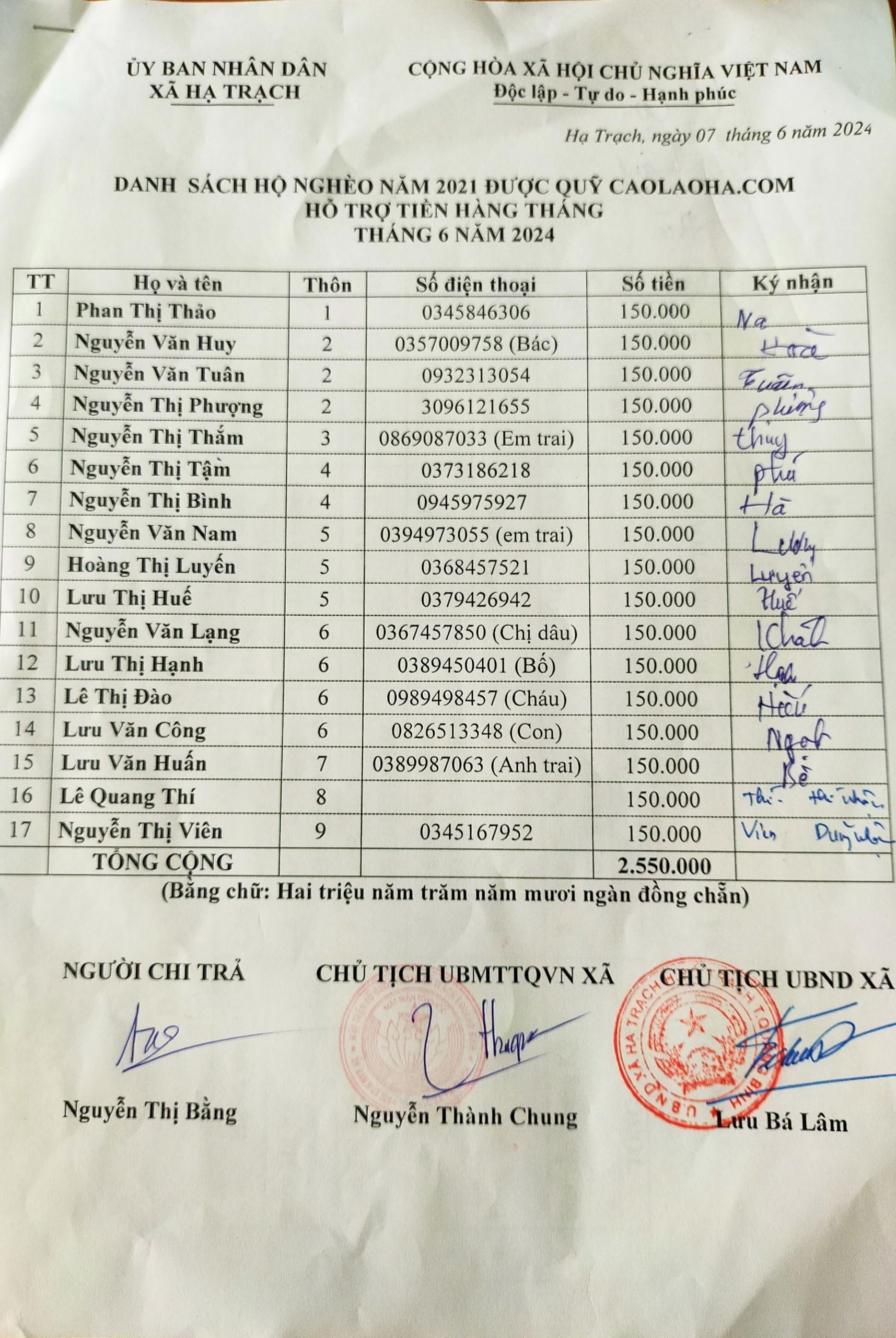 Sau khi cụ Bân mất, UBMTTQ xã đã đề nghị Quỹ caolaoha.com tiếp tục tài trợ cho con gái cụ là chị Nguyễn Thị Xanh, chị Xanh bị ốm đau dài ngày, gia cảnh rất khó khăn. Quỹ đã họp và đồng ý với đề nghị của xã, sẽ bắt đầu tài trợ cho chị Xanh tư tháng 7 năm 2024