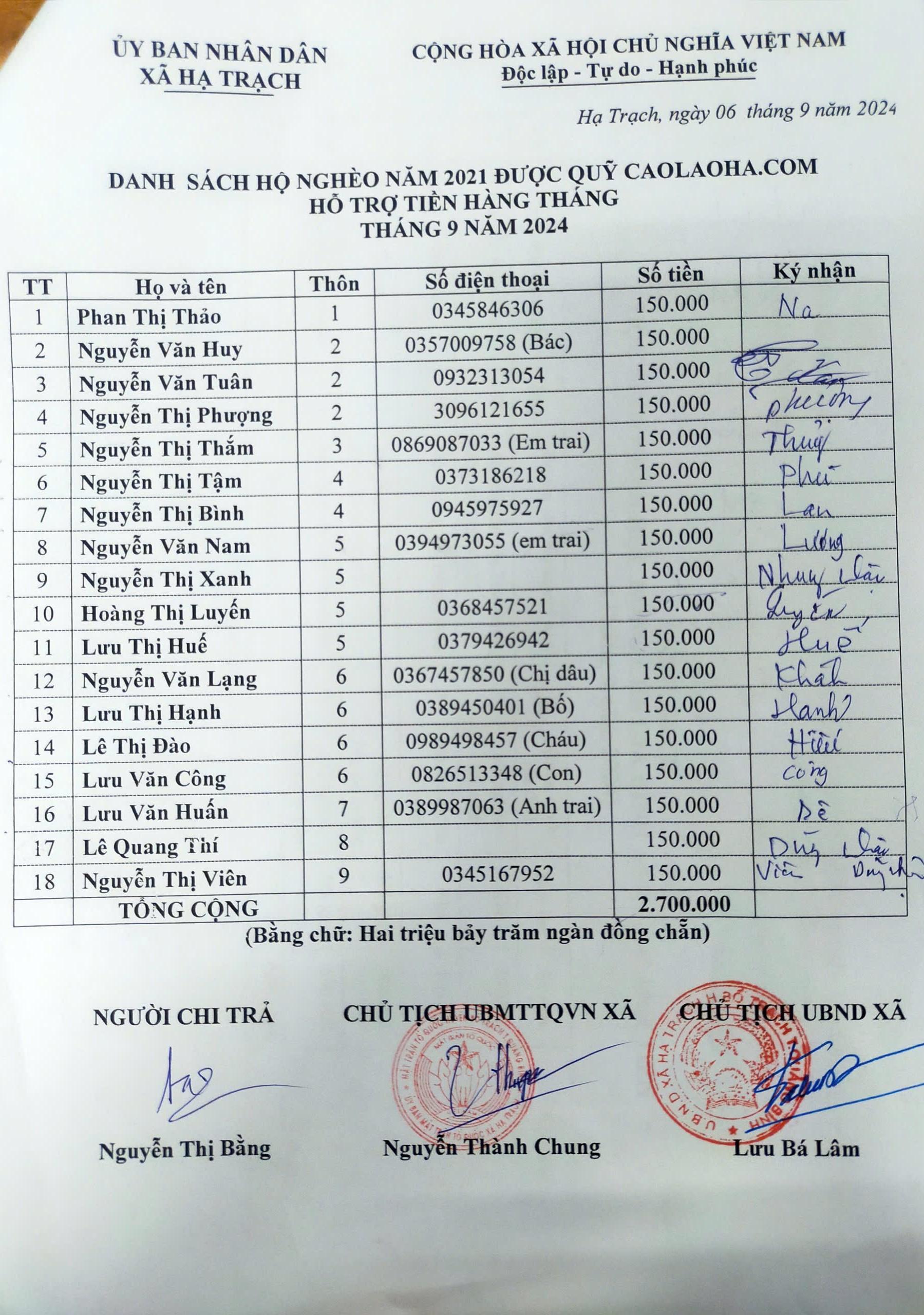 Trao tiền hỗ trợ tháng 912:45 - 25/09/2024 Trang tin caolaoha.com trao tiền tài trợ của tháng 9 năm 2024 cho 18 hộ nghèo và cho 5 học sinh nghèo của làng Cao Lao Hạ. Tác giả: Ban biên tậpChia sẻ: