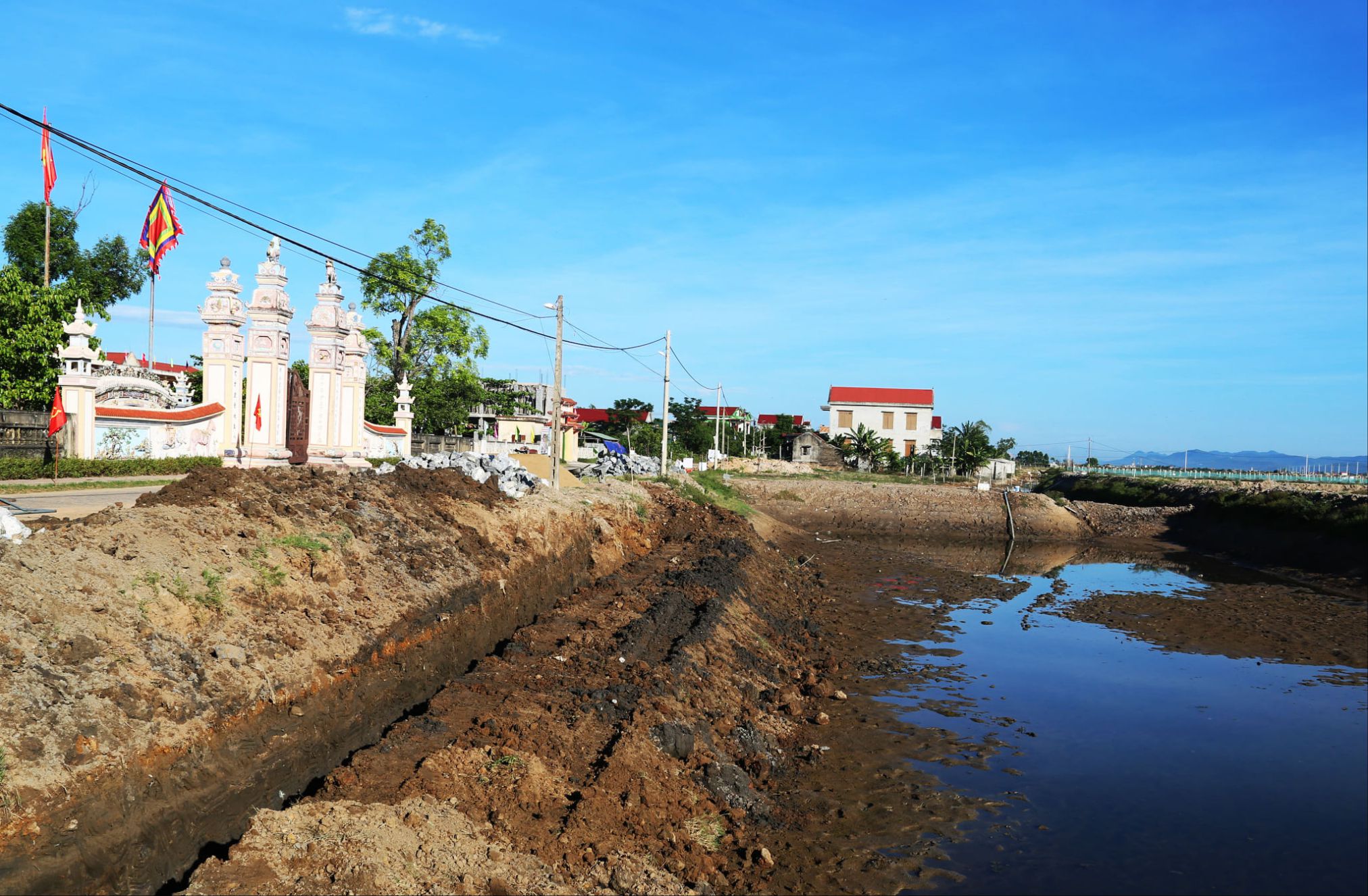 Trước khi chuẩn bị triển khai việc kè bờ theo thì lũ lớn tràn về, nước sông Gianh dâng cao, ngập hết công trình nên công trình phải tạm dừng chờ nước rút. Sau đó, do ảnh hưởng của đại dịch Covid – 19 nên công trình lại phải tiếp tục tạm dừng cho đến ngày nay.