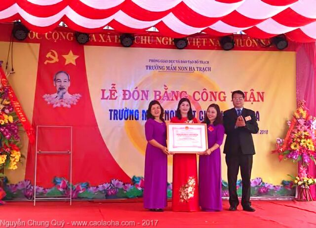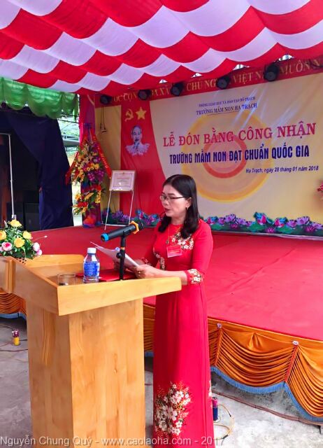 Hòa cùng với những thành tích của quê hương – Năm 2016 xã nhà được công nhận là xã đạt Chuẩn nông thôn mới, ngày 17/11/2017, Trường Mầm non Hạ Trạch được Chủ tịch UBND tỉnh Quảng Bình ký Quyết định công nhận trường đạt Chuẩn Quốc gia mức độ I. Trong niềm vui, niềm vinh dự to lớn đó, ngày 28/01/2018, nhà trường long trọng tổ chức lễ đón Bằng công nhận trường Mầm non đạt Chuẩn Quốc gia.