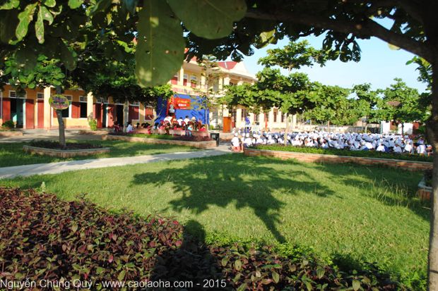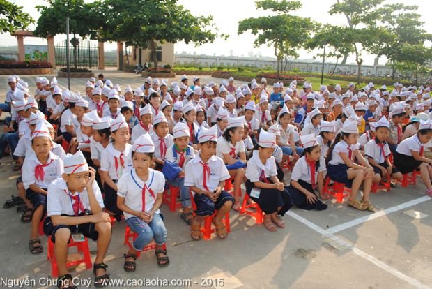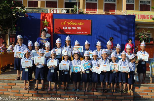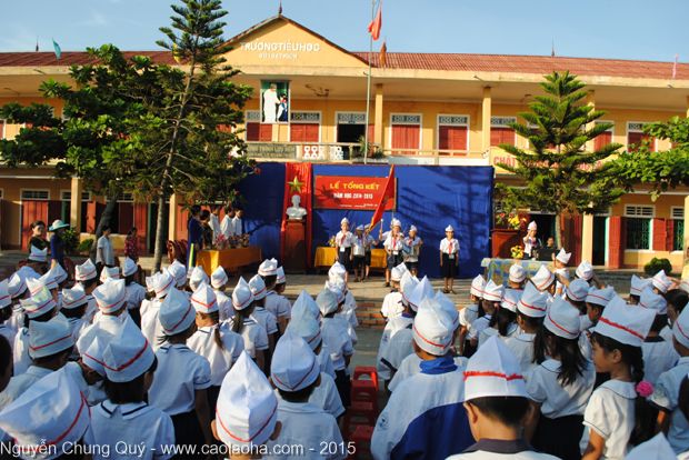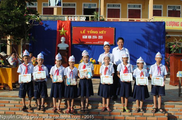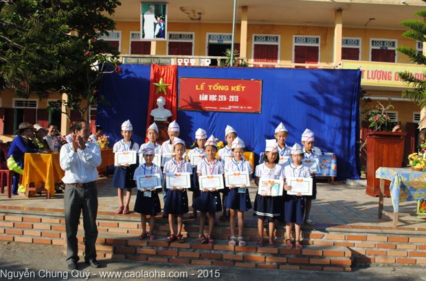 Sau phần nghi thức chào cờ, cô Lê Thị tuyết – Bí thư chi bộ, Hiệu trưởng nhà trường đọc báo cáo tổng kết năm học 2014- 2015, nêu lên những thành tích đạt được cũng như những mặt còn hạn chế của nhà trường. Trong năm học vừa qua, mặc dù là năm đầu tiên thực hiện Thông tư 30/2014/TT-BGD ĐT, bước đầu cũng còn một số bỡ ngỡ, tuy nhiên nhờ biết phát huy truyền thống của quê hương, của nhà trường, nên chất lượng dạy và học của trường vẫn được duy trì và đạt được nhiều thành tích cao, cụ thể kết quả cuối năm học: 100% học sinh đều được khen thưởng, trong đó học sinh đạt thành tích xuất sắc trong học tập và rèn luyện 23%, học sinh đạt thành tích tốt trong học tập và rèn luyện, đạt 42%. Trong các kỳ thi cấp huyện: IOE – Olympic Tiếng Anh trên mạng Internet, đạt 02 giải; Thi chữ viết đẹp có 10 em đạt giải, trong đó có 6 giải Nhất, 02 giải Nhì và 02 giải Ba; Hội khỏe Phù Đổng có 5 giải, trong đó có 02 giải Nhất, 02 giải Nhì về đá cầu và 01 giải Ba bơi lội. Để có được những thành tích ấy là sự phấn đấu không ngừng, lòng say mê, tâm huyết của đội ngũ cán bộ, giáo viên nhà trường; sự cố gắng nỗ lực của tất cả các em học sinh và nhờ sự quan tâm, giúp đỡ, phối hợp chặt chẽ của Hội cha mẹ học sinh.