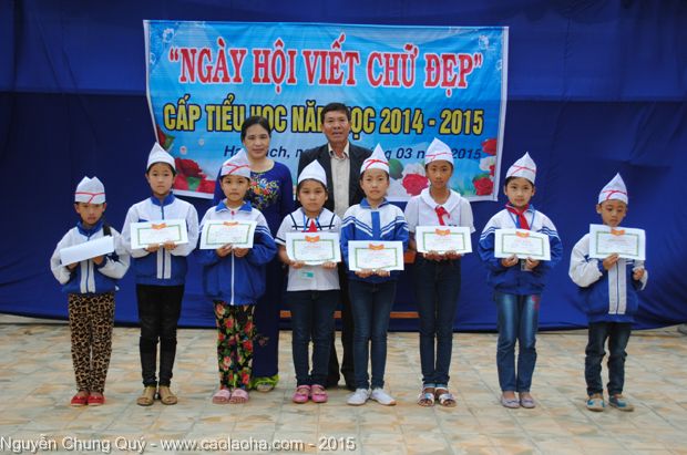 Đến dự với Ngày hội viết chữ đẹp có đại diện lãnh đạo chính quyền địa phương, đại diện Hội khuyến học xã, các bác trong Thường trực hội Cha mẹ học sinh, các thầy giáo cô giáo, đặc biệt là sự có mặt đông đủ 328 học sinh của trường.